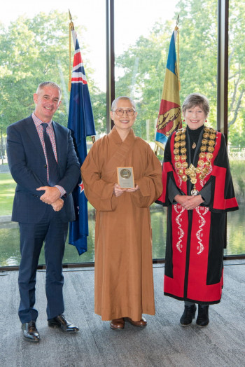 At all times she has acted above and beyond the call of duty. Although the first earthquakes occurred within months of her arrival to take up her position at the Confucius Institute, and although advised by the Chinese authorities to leave the city, nevertheless she refused and stayed to play an invaluable part in the recovery activities of the University of Canterbury, as well as helping the Chinese Embassy to care for local Chinese victims. Throughout her stay in Christchurch she has exemplified the virtues of generosity, diligence, sincerity and loyalty such as would make the Great Sage himself proud.