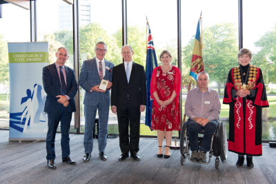 Thanks in large part to his gift of time, his efforts, and his devotion, the Mt. Pleasant Community in particular, and the City of Christchurch in general, have a fine new venue to house a wide range of classes, meetings, seminars, celebrations and social gatherings. Thanks to him, the Community and the City have before them an exemplar of what may be achieved, even in the most extreme of situations, with perspicacity, persistence, and perseverance.