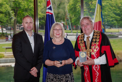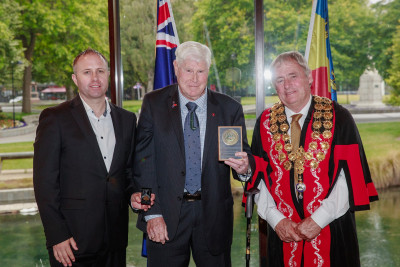 His untiring efforts, as well as countless hours of fundraising by members of the Chapter, saw this dream finally realised on 3 October 2006, when the Christchurch Peace Bell was formally unveiled in its pavilion in the Christchurch Botanic Gardens.