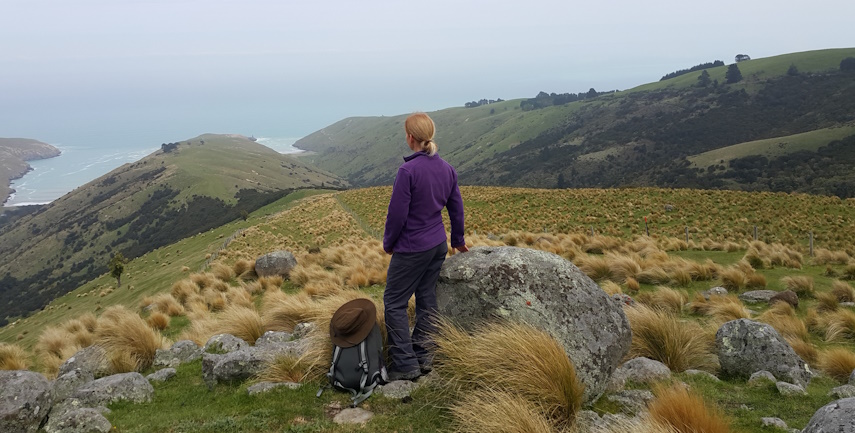 From the car park, start on the Te Oka Track and head through the gate and turn left. Cross the stile and follow the orange-topped poles for 3km, to the Bossu Road/Gap Road intersection.