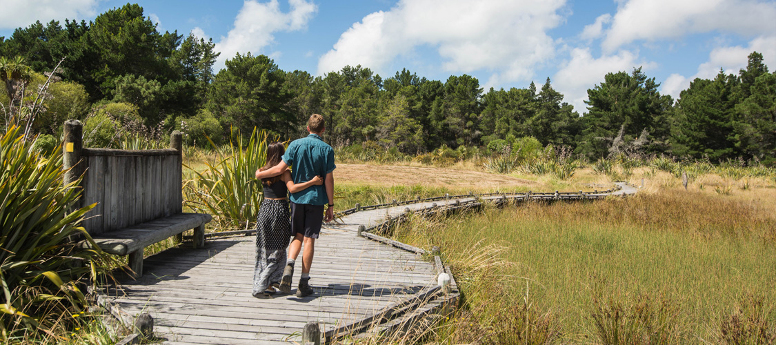 The Wetland Walk is an attractive stroll around a series of ponds with extensive boardwalk that keeps walkers above the sensitive wetland environment. There has been considerable native planting in this area to the delight of visiting birds. Get ready for this track using Plan My Walk(external link)(external link) by the NZ Mountain Safety Council. You can find track alerts, weather forecasts, trip reviews and a packing list, so you are set for your adventure. |
