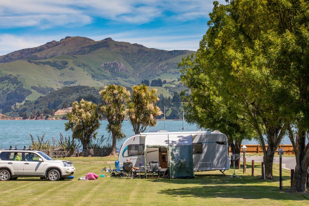 Duvauchelle Holiday Park is situated on the water’s edge just before the seaside village of Akaroa on Banks Peninsula.
