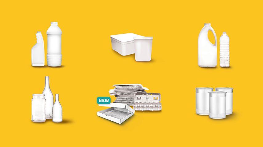 By putting the right stuff in the yellow bin, you’re making it possible for us to recycle. Remember to give your bottles and containers a rinse, make sure they are loose and put the lids in the red bin. Your recycling bin is collected every two weeks.