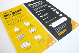 This means there are incorrect items in your bin and we are unable to empty it on this collection cycle. We’ll leave you some educational material showing what the correct items are for each bin. Please remove the items and put your bin out for collection on your next recycling day. You can drop off correct recycling, free of charge, to your nearest EcoDrop Recycling Centre.
