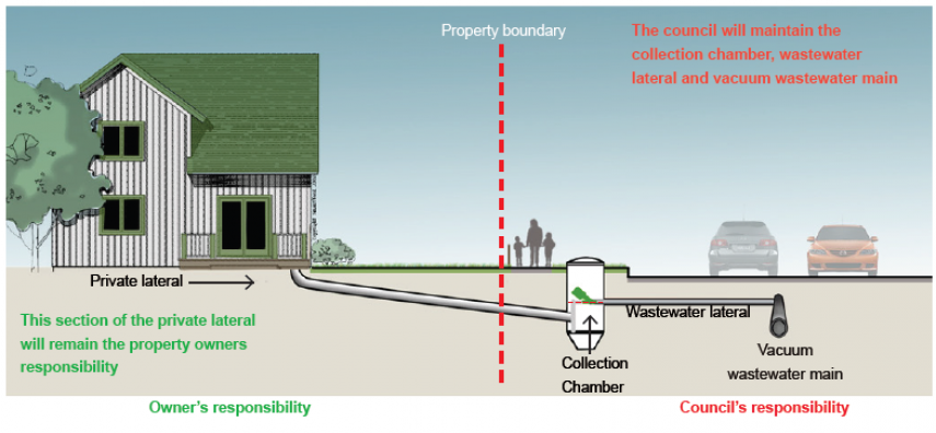 In a vacuum system, four to six private gravity sewer laterals are connected to a collection chamber.