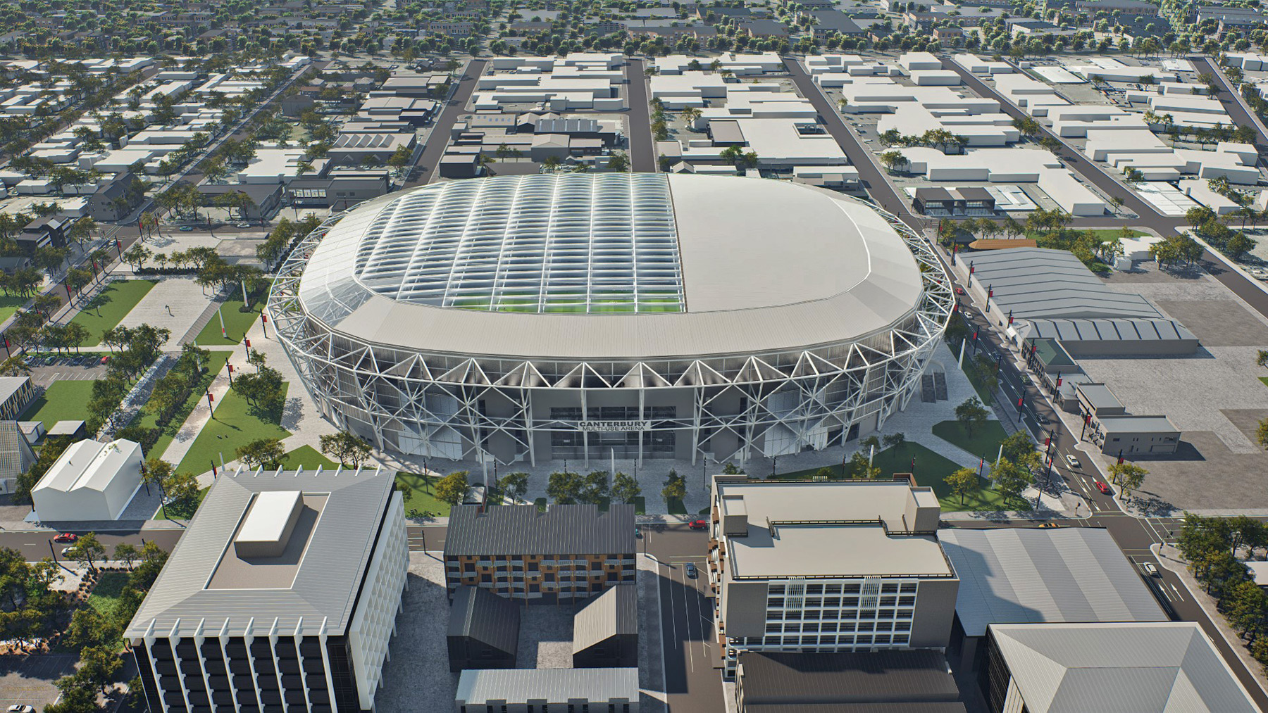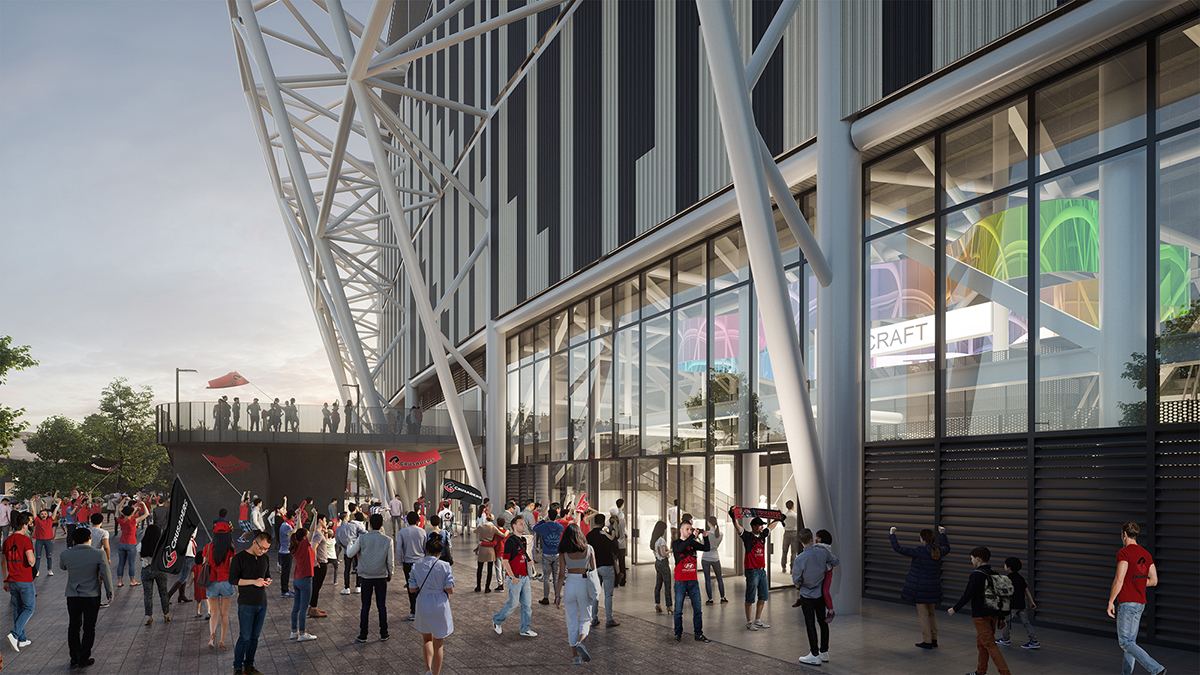 Design images of the stadium, artworks, the surrounding precinct, and how it will fit in with the surrounding neighbourhood. All images were created by Populous.