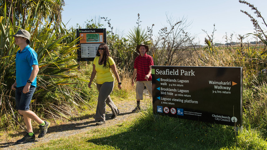 Seafield Park is approximately 70 hectares and extends between the townships of Brooklands and Spencerville and alongside the western edge of Brooklands Lagoon/Te Riu o Te Aika Kawa.