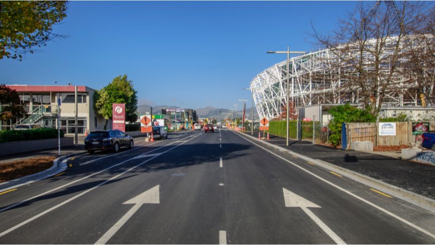 The major road and water pipe upgrades around One New Zealand Stadium at Te Kaha finished in July 2025.