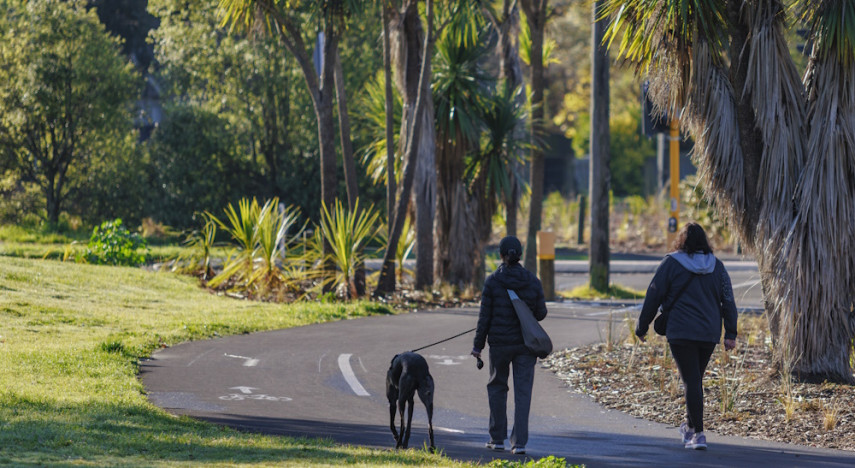 Dogs must be leashed on all formed paths and tracks. Prohibited in Cockayne Reserve everywhere except walkway. |