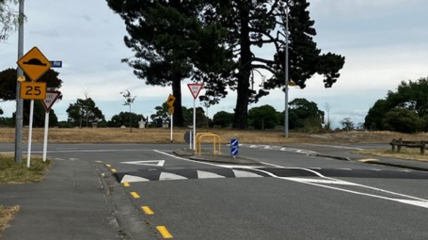 In some locations around Christchurch, we narrow intersections to make it safer for everyone to use. Sometimes, like in the photo below, this includes using pedestrian refuge islands and kerb buildouts.