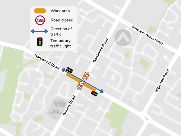 We’re working on the watermain at the intersection of Harewood Road, Gardiners Road and Breens Road, and on Waimakariri Road and Whitchurch Place at night from 7pm on Sunday 14 December to 7am on Thursday 18 December 2025.