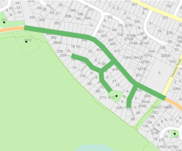 345 Mairehau Road to Inwoods Road, including Daytona Place and Karlaw Place. |