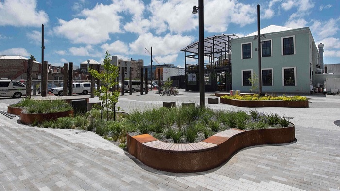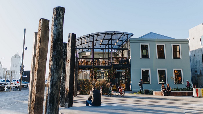 Vanguard Square contains a mix of hospitality, such as Dux Central, and commercial businesses such as Vodafone and Kathmandu Limited, and has a gritty urban vibe.