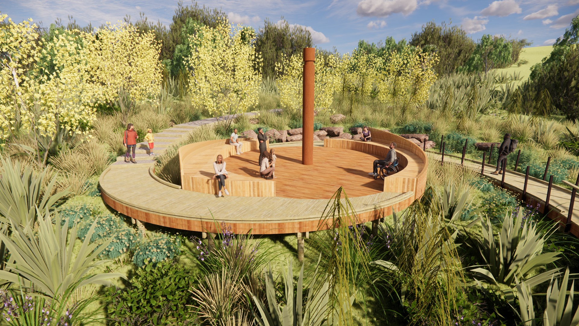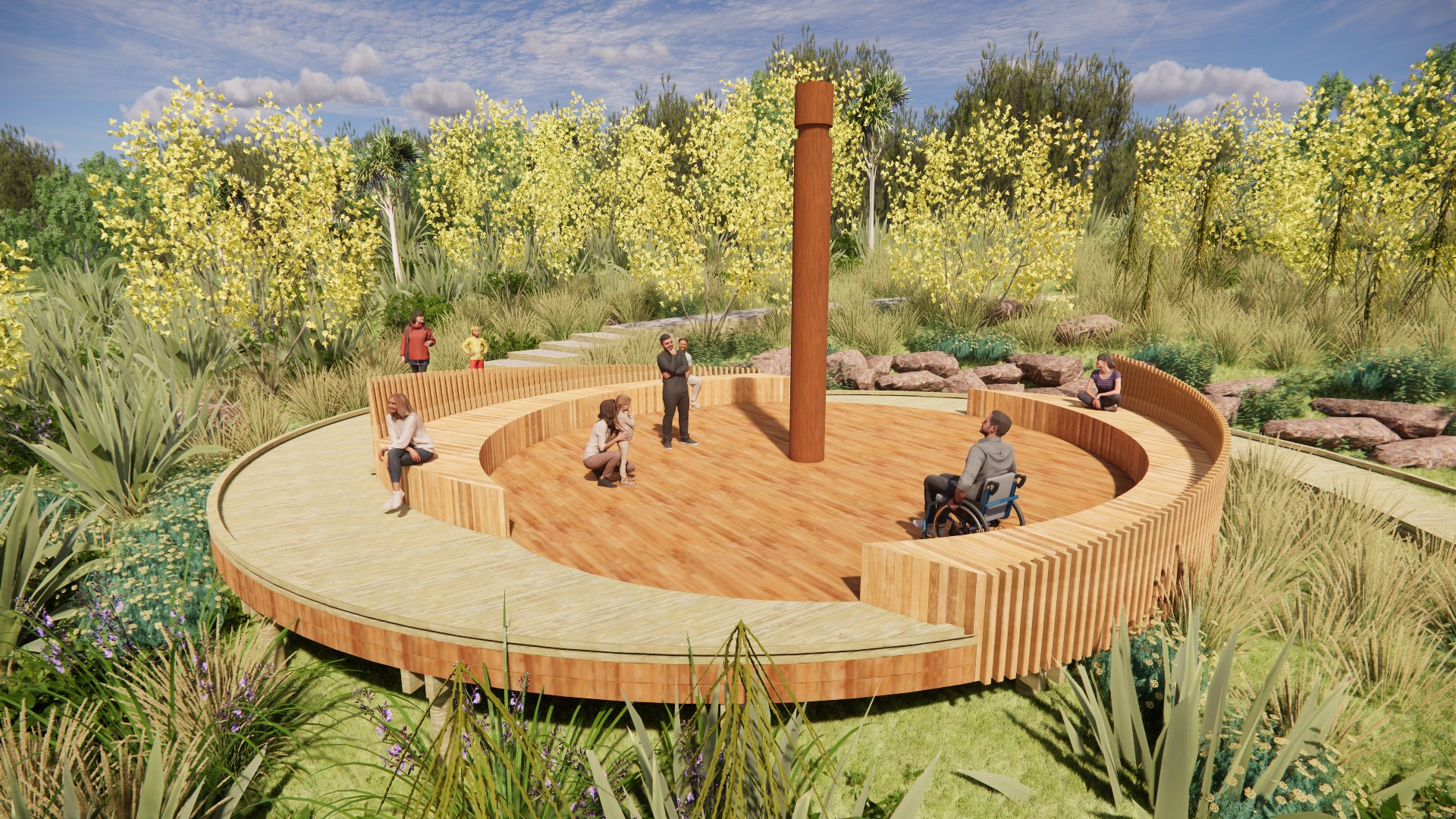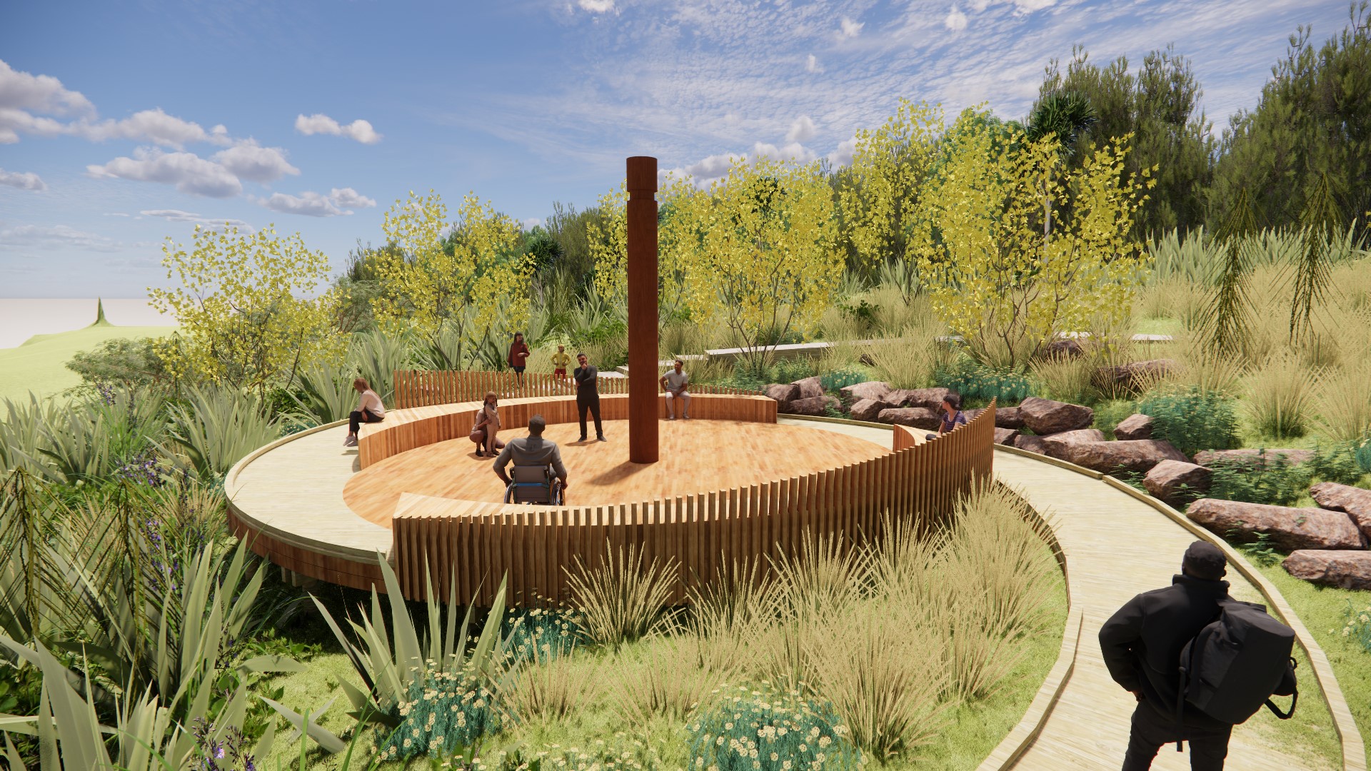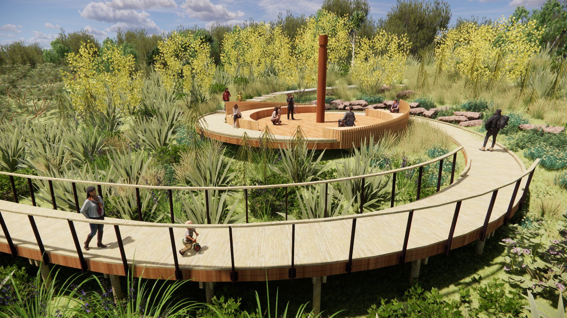 The next phase will focus on the creation of two takarangi – a double spiral pathway that will also serve as a discovery trail – and a network of paths through the Reserve, with aspects of the design based on the harakeke (flax) abundant in the area. Another centrepiece will be the installation of a second pou. Read more on Newsline.(external link)
