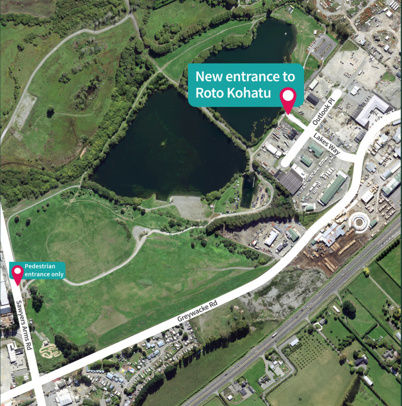 Vehicle access to Roto Kōhatu is now off Outlook Place.