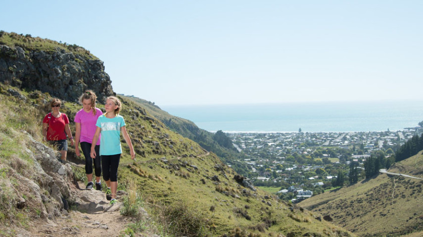 Start at Sumnervale Reserve at the end of Lower Sumnervale Drive. Follow the track markers to a stile that takes you over into Greenwood Park. The track has a gravel surface and climbs uphill initially beside a small stream. Gravel gives way to grass and the track becomes wider before climbing up through a section of switchbacks. The track then turns left towards Evans Pass and gradually climbs through rocky terrain to Evans Pass Road. Cross into Rapanui Bush where another short track will take you to Evans Pass. This is a shared-use track so watch out for mountain bikers coming downhill. The top of Evans Pass offers views out across Lyttelton Harbour and connects with walks along the Crater Rim in either direction. You can choose to return the same way or via the Scarborough Bluffs Track back to Sumner. Get ready for this track using Plan My Walk(external link) by the NZ Mountain Safety Council. You can find track alerts, weather forecasts, trip reviews and a packing list, so you are set for your adventure. |